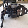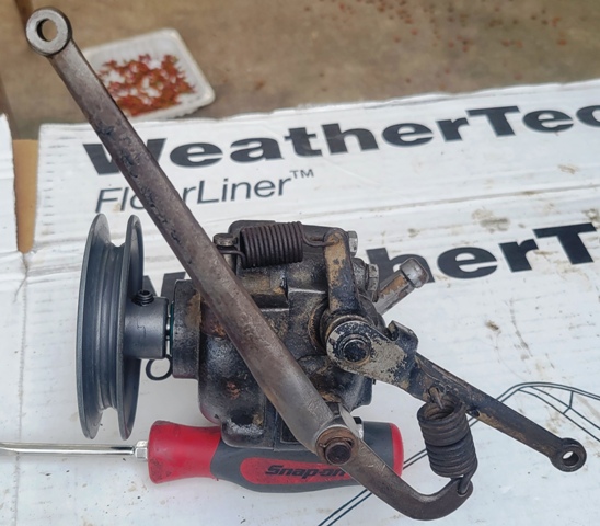 Fourth - I began disassembly by removing the front pulley which was held with a hex head set screw. I then disassembled the linkage by removing the spring clip (be careful it does not launch) and set the hardware aside in a safe place. I then thoroughly degreased with carb cleaner and wiped it down. It appears the governor was painted black when new.