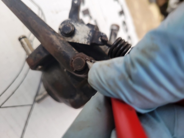 First - I removed the cotter pin and cross pin from the Governor Handle pull cable yoke and the 7/16" wrench size nut from the carburetor linkage rod and set the hardware in a safe place.