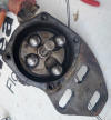 - Reverse the steps in "Fourth" by placing the linkage on the shaft noting the orientation of the springs, and then the pulley. I mentioned earlier about referring to the pictures before disassembly - do you see anything wrong in this picture?